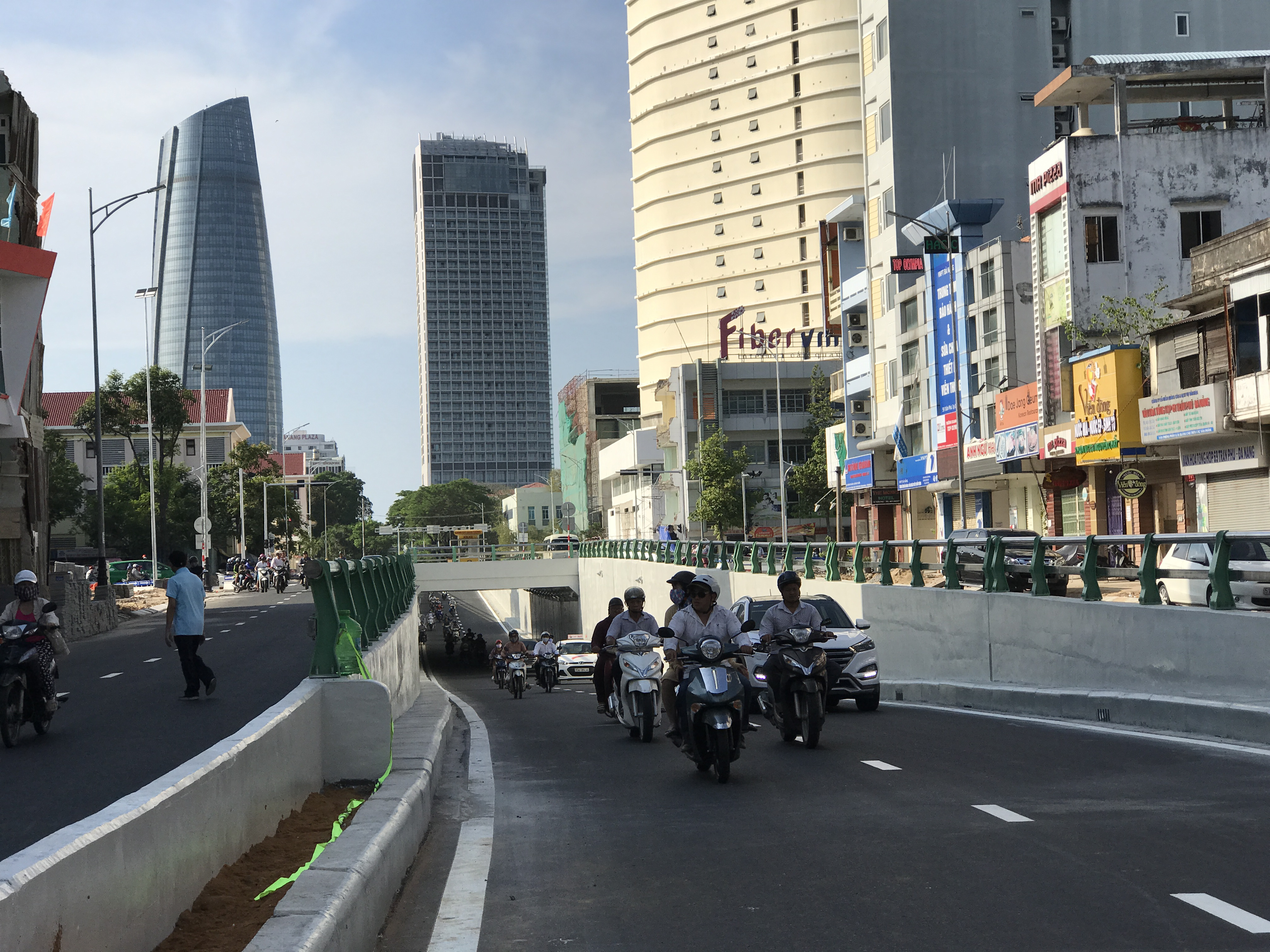 Phần đường gom bên trái dành cho các phương tiện rẽ trái theo hướng Trung tâm Hành chính xuống đường Bạch Đằng hoặc qua cầu Sông Hàn. Phần đường gom bên phải dành cho các phương tiện rẽ phải theo hướng Trung tâm Hành chính đi ngã ba Huế, đi thẳng theo hướng Trung tâm Hành chính đi cầu Rồng. Đối với đường Lê Duẩn-cầu Sông Hàn giữ nguyên tổ chức giao thông như hiện nay.
