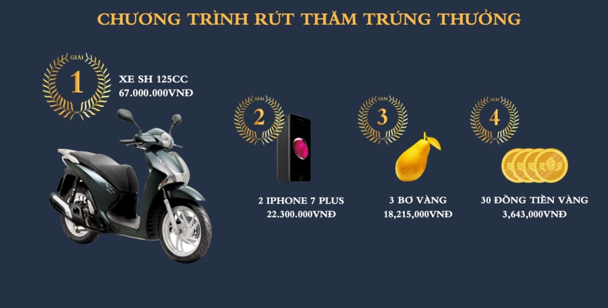 Từ nay đến hết 14/5/2017, khách hàng mua Bảo Lộc capital sẽ nhận các ưu đãi chiết khấu đặc biệt: 01 xe SH 125cc, 02 Iphone 7 Plus, 03 trái bơ vàng, 30 đồng tiền vàng. Bên cạnh phương thức thanh toán linh hoạt, dự án cũng được ngân hàng Nam Á hỗ trợ khách hàng vay vốn 70% với mức lãi suất chỉ 7.5%/năm đầu tiên.