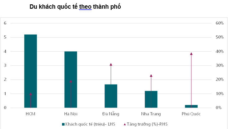 Theo nghiên cứu của Savills, trong năm 2016, các thành phố nghỉ dưỡng và đảo của Việt Nam đã vượt qua Tp. HCM và Hà Nội trong tốc độ tăng trưởng khách du lịch quốc tế. Với vị trí đảo biệt lập khí hậu nhiệt đới đặc trưng, Phú Quốc trở thành điểm đến hấp dẫn và là lựa chọn mới cho khách du lịch quốc tế, với tốc độ tăng trưởng khách đến 40%. Trong khi đó, Đà Nẵng trên 30%, và Nha Trang ở mức 23%, cũng vượt qua tốc độ tăng trưởng của Tp.HCM (10%) và Hà Nội (19%).