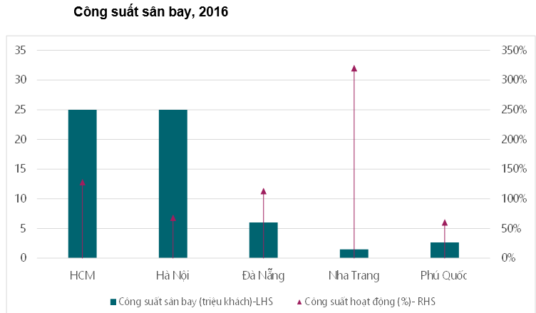 Chính quyền đã nỗ lực để giải quyết công suất hạn chế ở sân bay. Trong hơn hai năm tới, Tân Sơn Nhất (Tp. HCM) sẽ tăng công suất từ 25 đến 38 triệu hành khách mỗi năm. Tới năm 2017, sân bay nội địa Đà Nẵng hiện công suất 9 triệu hành khách/năm sẽ được mở rộng để đón thêm 4-6 triệu hành khách mỗi năm. Nha Trang đang bị chậm tiến độ, với dự án mở rộng sân bay Cam Ranh giai đoạn một bị trì hoãn từ đầu năm 2016 đến Q1/2018. Với việc đón 4,8 triệu lượt khách trong năm 2016, công suất nâng cấp dự kiến 2,5 triệu hành khách mỗi năm sẽ không đủ đáp ứng ngay cả trong giai đoạn hiện tại.