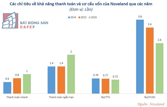 Những khoản nợ này cho thấy tổng nợ của Novaland tăng đáng kể so với năm ngoái. Tuy nhiên, các chỉ số về thanh toán ngắn hạn và thanh toán nhanh của Novaland lại được duy trì và cải thiện ở mức cao, các chỉ tiêu cơ cấu vốn như tổng nợ/tổng tài sản hay tổng nợ/vốn chủ sở hữu đều giảm qua từng năm và ở mức hợp lý.