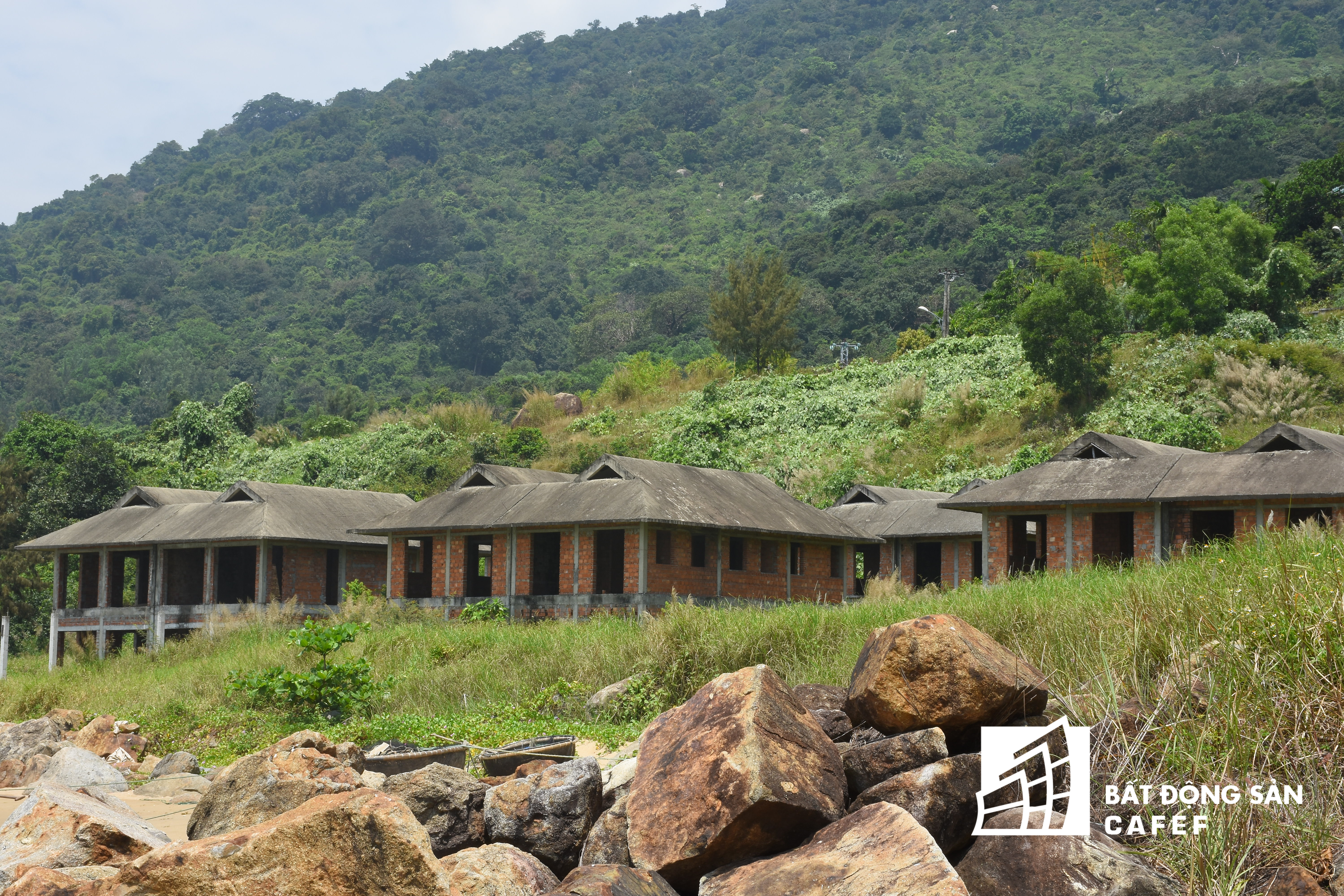 Nhiều dự án lớn dọc bờ biển đã xây xong phần thô, nay hoang phế, nằm xen lẫn với cây dại. Khu đất thuộc dự án không rào chắn, không một bóng người, không ai bảo vệ. Một người buôn bán gần đó cho biết mấy năm nay không thấy ai vào ra dự án.