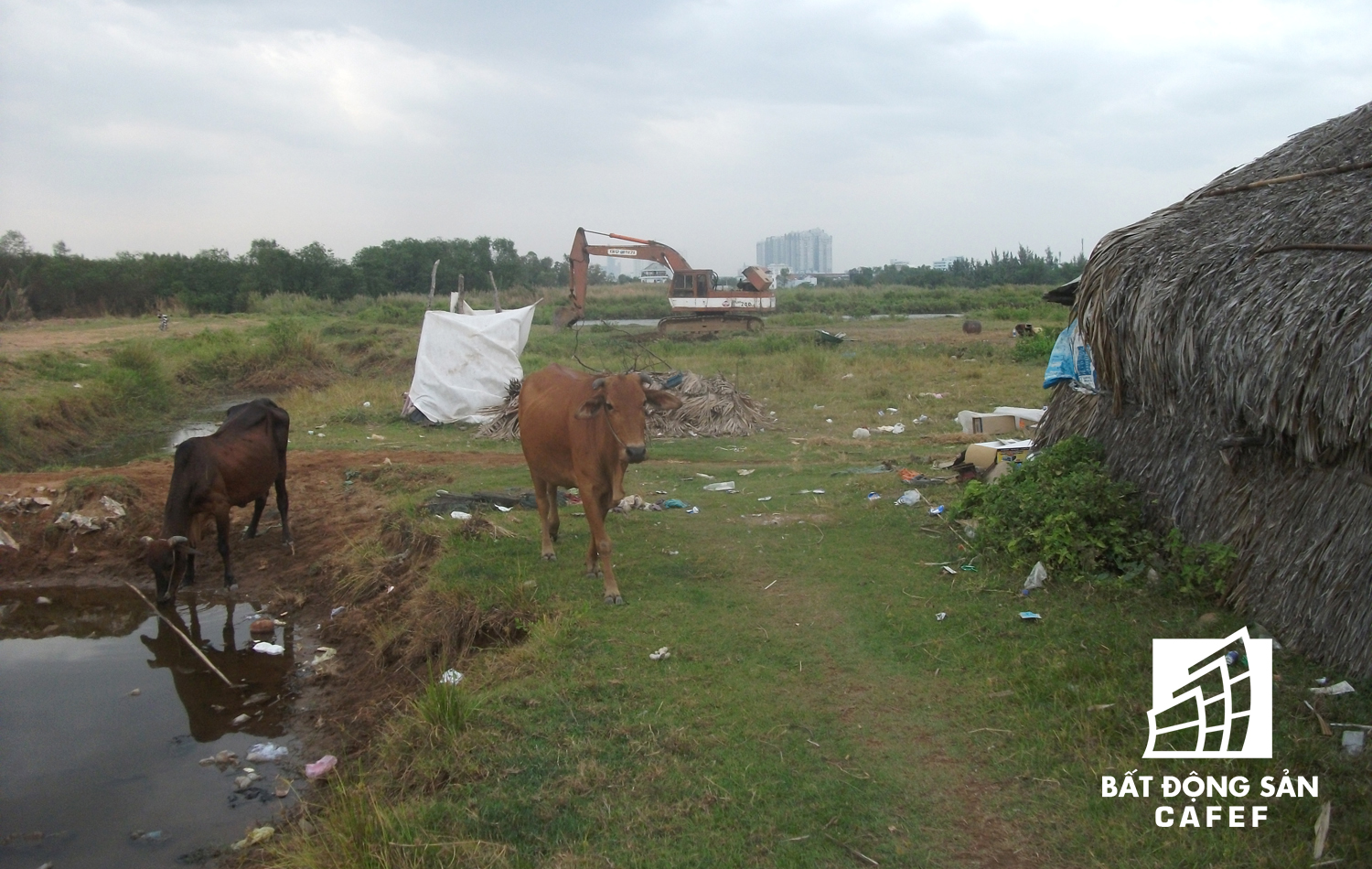 Tại dự án chưa có dấu hiệu xây dựng công trình nhà ở và hạ tầng giao thông nào. Trong khu vực dự án chỉ có 2 chiếc xe cuốc đất nằm im lìm và vài chú bò nhẩm nha gặm cỏ.