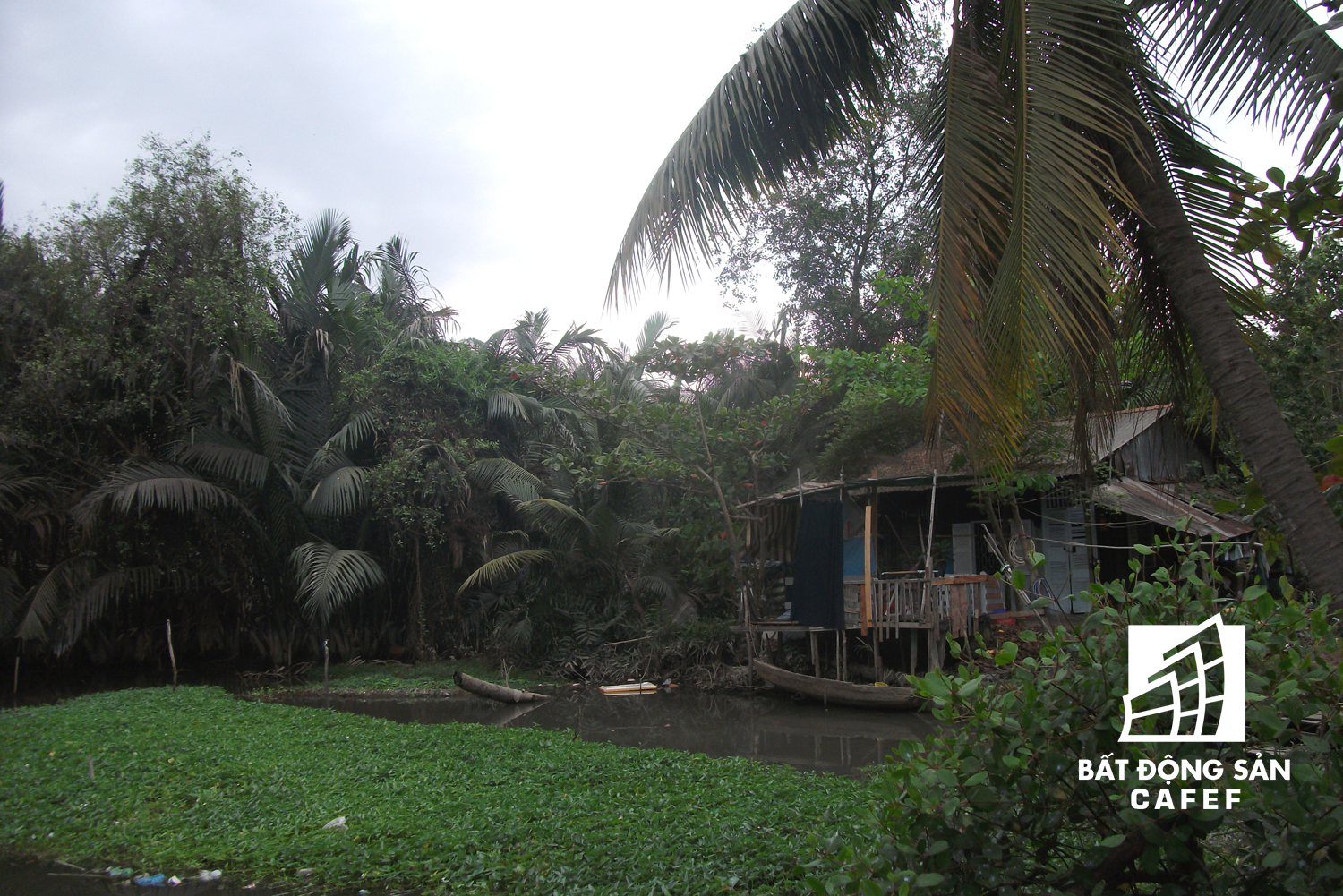 Bốn bề dự án đều cỏ hoang, nhiều hố sâu đọng nước. Trong khi người dân sinh sống tạm bợ ở đây đang làm ô nhiễm cả khu vực bởi xả thải thẳng ra đất dự án.